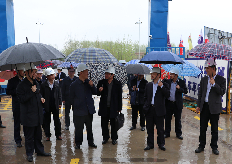 4月2日下午,冒着连绵细雨,六安市市委副书记、市长叶露中,在安徽建工控股党委书记、董事长赵时运的陪同下,来到安徽三建公司承建的六安第一中学扩建项目调研。六安一中校长李永江、安徽三建公司党委书记、董事长左登宏及项目有关负责人参加调研。