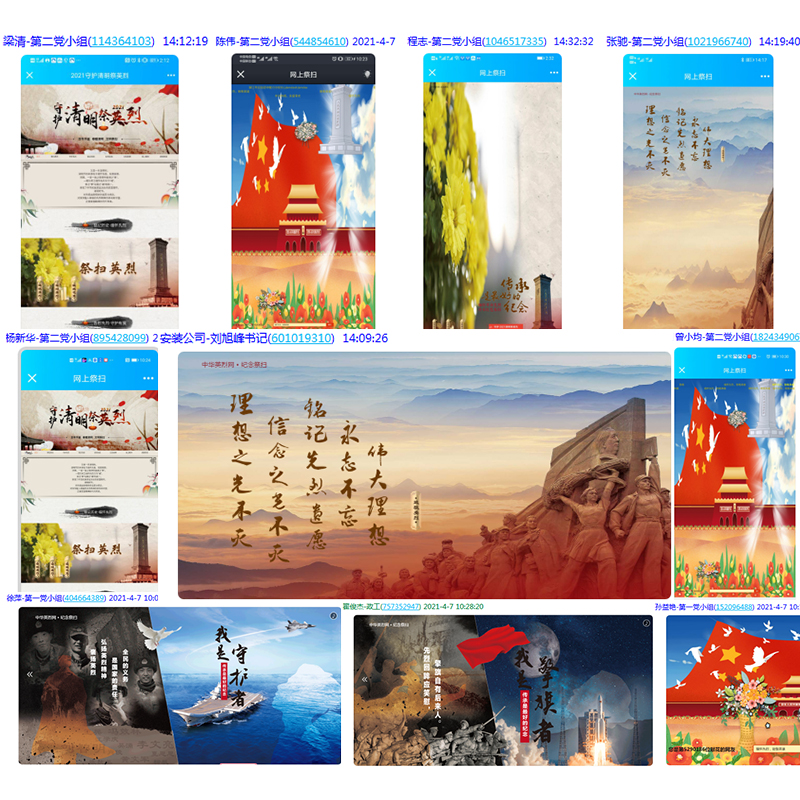 梨花风起,又至清明。为更好地缅怀革命英烈、传承红色基因,把开展党史学习教育同弘扬传统文化结合起来,全面贯彻习近平总书记党史学习教育动员大会重要讲话精神。安徽三建公司工程研究院、安装公司、建筑工业公司等多个基层党支部纷纷开展“清明祭英烈”线上祭扫活动,引导全体党员干部弘扬英烈精神,铭记光辉历史,接受精神洗礼,牢记初心使命。各支部党员踊跃参与。