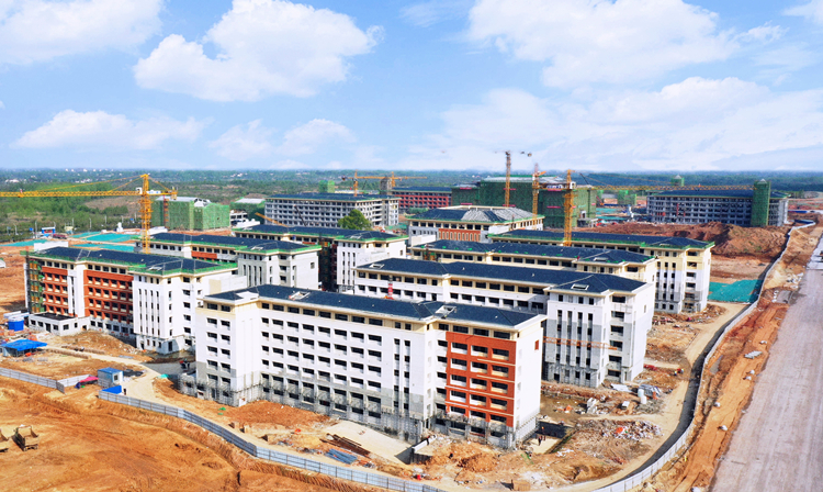 六安一中前身是公立六安州中学堂,1905年建校肇端,“百年学府”旧貌待新颜。六安一中扩建项目位于六安市金安区南山大道与锦绣路交叉口,建筑总面积20.6万㎡,17栋单体,总占地面积525亩,工程造价10.5亿元,工期仅420天。安徽三建承建项目以来,依托自身产业链优势,协调组织“大兵团集群作战”,逐个击破施工重难点,开疆拓土,一日三秋,三个月冲出正负零,半年实现主体结构封顶,刷新建设新速度,当前决战决胜的春季攻势业已打响,全部单体进入外墙装饰阶段,室外总体施工大幕同步拉开,累计完成产值5.5亿元,这场抢工大战,已经窥见胜利曙光。