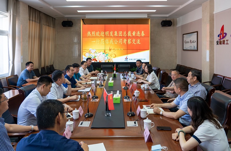 6月4日上午,明发集团总裁黄连春一行到安徽三建公司考察交流。安徽三建公司党委书记、董事长左登宏,党委副书记、总经理何洪春,副总经理刘顺利,安建保理副总经理杨斌、程宇鹏等有关人员参加考察交流。