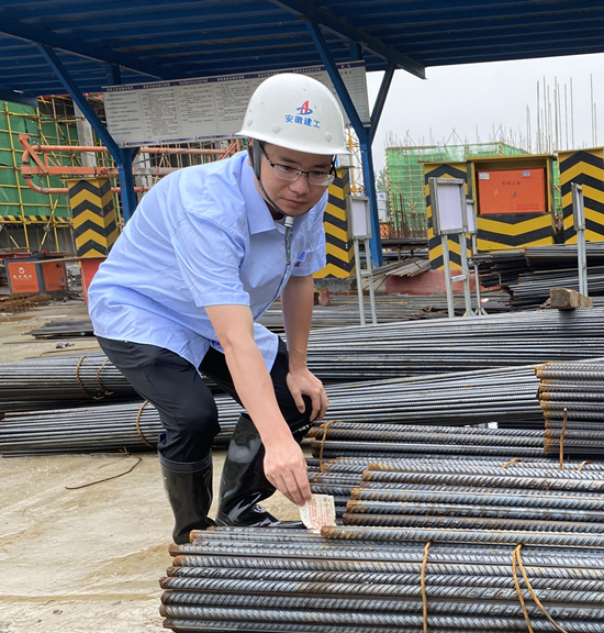 2021年4月份,适值钢材涨价缺货,项目部改良了库存方式,成立了钢材采购管理小组,胡景辰作为材料员兼核算员,每日坚守在工地,时刻关注钢材价格变化。当时,他的父亲患病急需住院,作为家中唯一的男孩,本应回家尽孝!可一想到工作,一想到迫在眉睫的节点目标,他两难了。经过激烈的思想斗争,胡景辰最终选择留在了工地,直至7月底父亲做移植手术,他才匆匆赶回家,待父亲转出ICU仅半天,他又赶回了工地,回到了他全身心热爱的工作中。