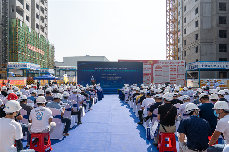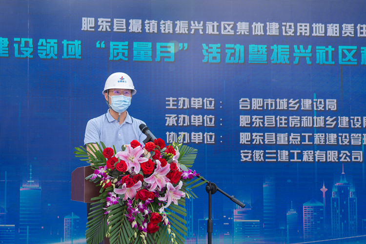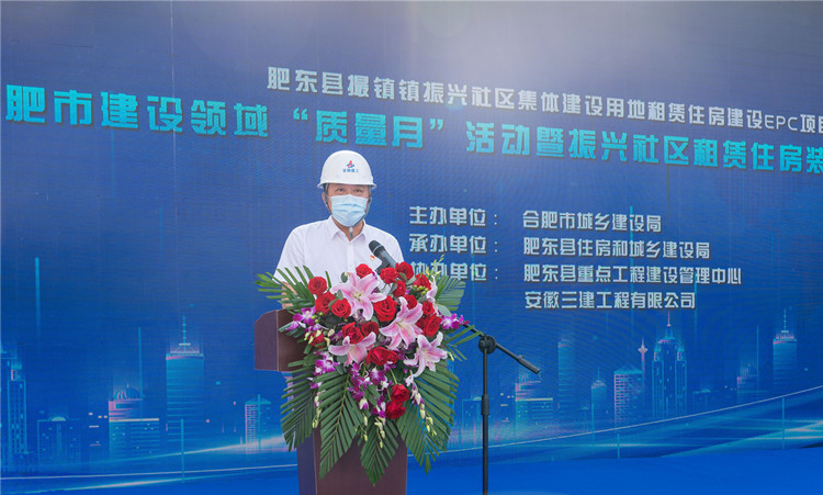 为不断提高装配式建筑制造建造水平,大力推进质量强市建设,9月18日上午,合肥市建设领域2021年“质量月”活动暨振兴社区租赁住房装配式建筑现场观摩会在安徽三建肥东振兴EPC项目举办。合肥市城乡建设局总工程师王荣村,肥东县委常委、副县长王伟程、安徽三建公司党委副书记、总经理何洪春等出席会议。会议由合肥市绿节中心主任杜德平主持。