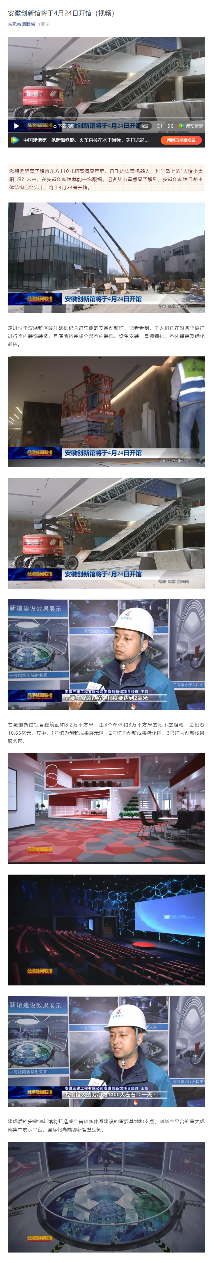 合肥新闻联播微信公众号——安徽创新馆将于4月24日开馆