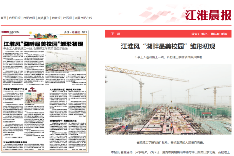 媒体聚焦丨合肥晚报、江淮晨报先后报道公司承建的合肥理工学院1标段项目最新进展