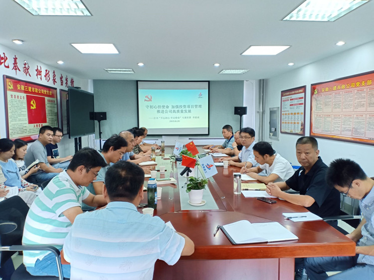 8月20日下午,公司副总经理李建成为市政公司和设备租赁公司广大党员干部职工讲授《守初心担使命,加强投资项目管理,推进公司高质量发展》的专题党课。在市政公司会议室,来自市政公司和设备租赁公司的党员、入党积极分子及机关管理人员共20余人参加了党课教育。