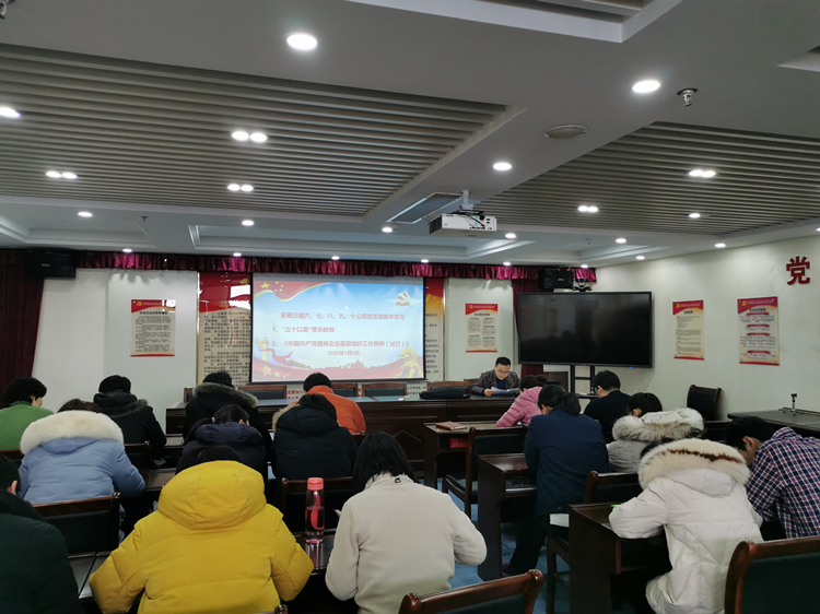 1月8日上午,安徽三建六、七、八、九、十公司党支部于香枫创意园22楼党员活动室开展“三个以案”警示教育,并集中组织党员职工学习《中国共产党国有企业基层组织工作条例(试行)》,共计30余人参加