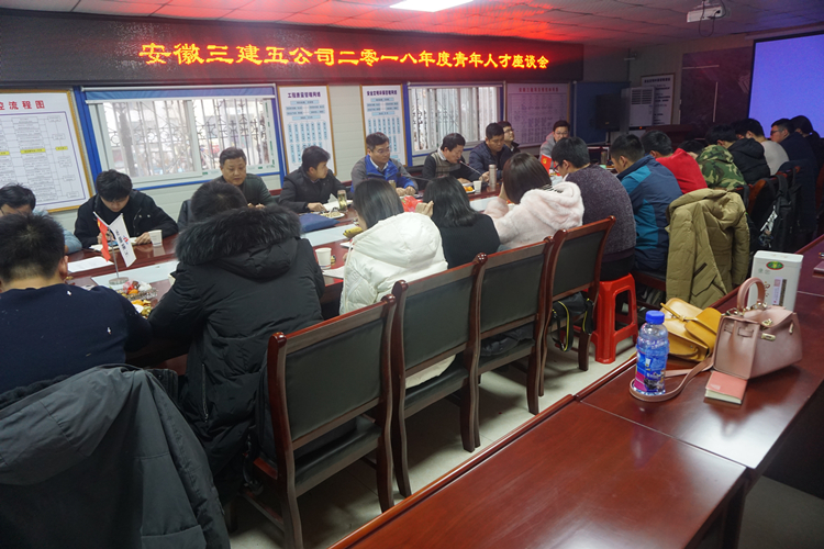 为进一步了解青年职工的思想动态和工作状态,加强人才培养,12月21日,五公司深入一线,在州来皖投·天下明珠项目部召开2018年度青年人才交流座谈会。分公司领导班子、各项目经理、近三年进场的青年职工、优秀青年员工代表共40余人参加了座谈会。