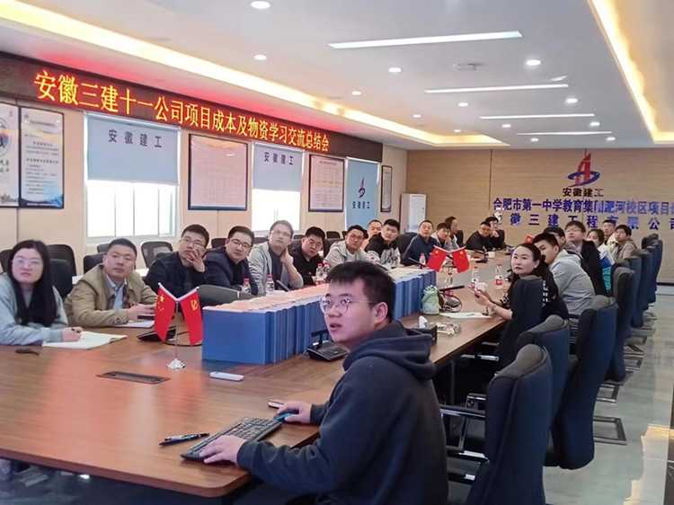 4月26日上午,十一公司在合肥一中淝河校区项目召开项目成本及物资管理交流总结会,分公司科室负责人、所属各项目核算员、材料员参会。