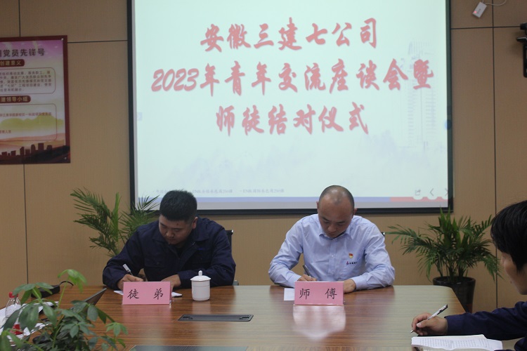 5月13日下午,七公司在江淮学院项目组织召开2023年青年交流座谈会暨师徒结对仪式,19名青年职工和20名在建项目班子成员、骨干参加。