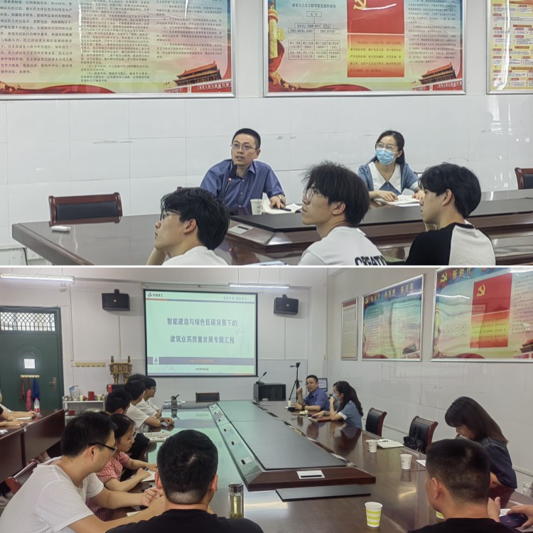 在报告会上,张宏伟介绍了建筑业发展概况、智能建造发展现状,重点结合安徽建工三建公司实际案例探讨智能建造推动建筑企业高质量发展的路径。张宏伟在报告中还从智能化角度深入探讨了人工智能技术在智能建造中的应用,让学生了解到不同学科之间的交叉点和应用场景。研究院党员杨文、刘文静也分别针对企业智能设计、智慧建造作出经验交流分享。