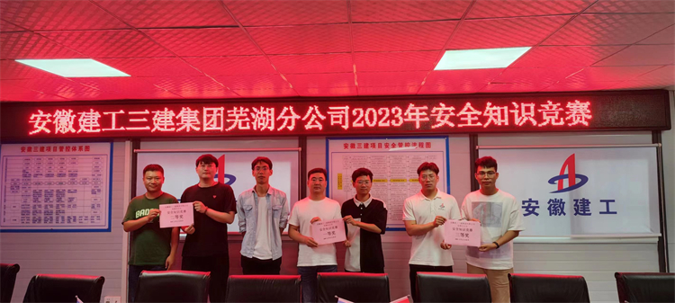 为全面落实全员安全生产责任制,提升职工安全意识、安全技能,6月25日上午,芜湖分公司在高速时代学府一标段项目会议室开展2023年“安全生产月”知识竞赛,此次竞赛邀请高速时代学府项目建设单位、高速时代学府二标段中铁四局、分公司机关和所属4个项目各一支队伍参赛。