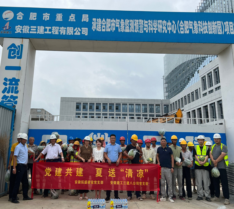 八公司党支部联合安徽拓盛建设党支部深入合肥市气象监测预警与科学研究中心项目开展“送清凉”慰问活动
