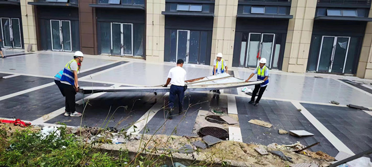 本次台风造成了项目积水严重、场地道路受损、现场围墙倒塌等严重问题,为排除各类安全生产隐患,保障职工群众生命财产安全,7月30日,项目全体管理人员迅速行动,抢修受台风暴雨损毁的道路、临电设施、围挡等,并加强灾后环境消杀、道路清障、积水清理等,全力开展灾后恢复工作。