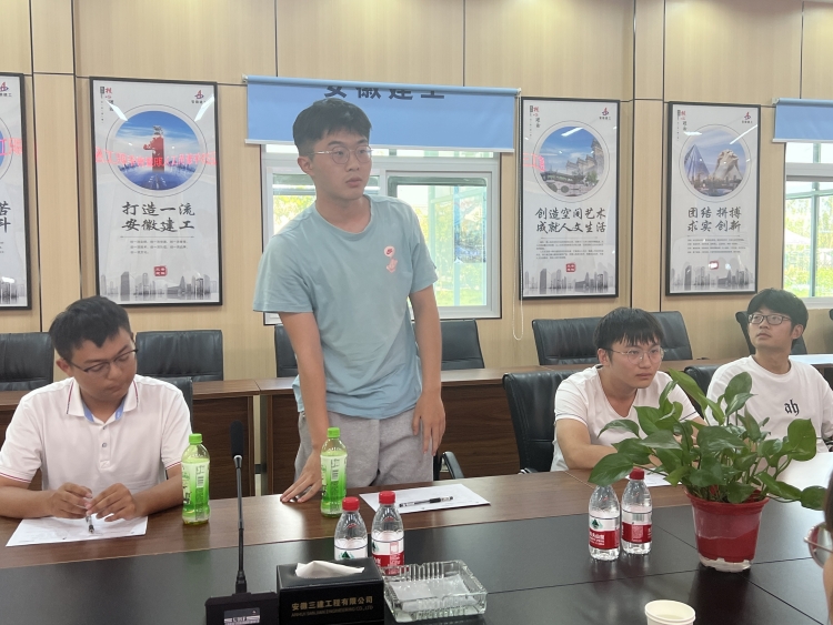 会议最后分公司经理左从义再次表达了对新进场大学生的欢迎并提出以下几点要求,一是做好思想和身份上的转变,沉下心来深入项目一线,日常工作中要留心观察、主动思考、认真学习、努力作为,不断提升干事创业的本领。二是充分利用好三建“师带徒”传统机制,夯实履职本领。三是青年人要发扬创新意识,善于观察新事物,发现新问题、打开新视野,在创新的道路上不停奔跑,赋予工作新动能。四是高温施工要做好防暑降温工作,保证人身安全。