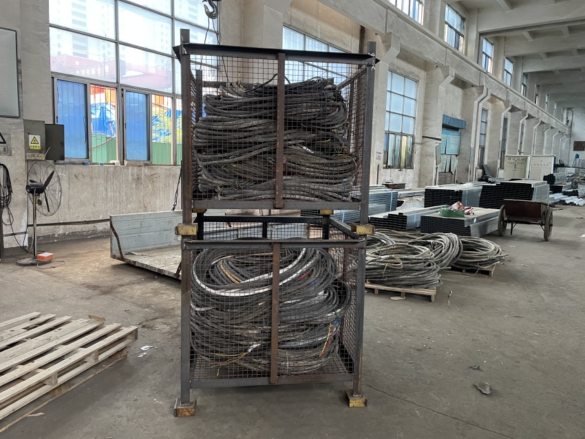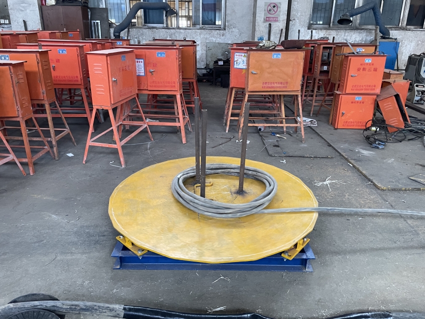 样式一辅助收卷机是利用废旧底座、转盘、转轴和辅助轮组成,主要工作是辅助电缆收卷机收卷电缆;样式二辅助收卷机是利用旧的单头液压放卷机改装为收卷机,用于电缆回收的收卷码放。两种辅助收卷机作业时相得益彰,工作效率约是人工作业的3倍,大大提高了工作效率,节约了成本。此外,三建科技公司还用废旧材料焊接了电缆线收纳笼,便于电缆线的整理堆放。