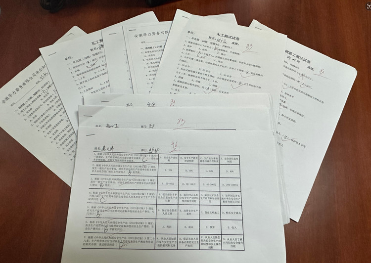考试内容涵盖了公司安全管理规范规程、三级教育、消防安全等相关内容,为确保考试取得实效,项目负责人全程监考,杜绝“形式主义”和“走过场”确保了考试成绩的真实性,真正达到学以致用。通过这次考试,员工们不仅深入地理解了安全的重要性,巩固了管理人员及班组长的安全管理知识,更使大家深刻懂得了安全的重要性,真正强化了全员对安全工作的理解力和执行力,增强了在实际工作中预防事故的能力。