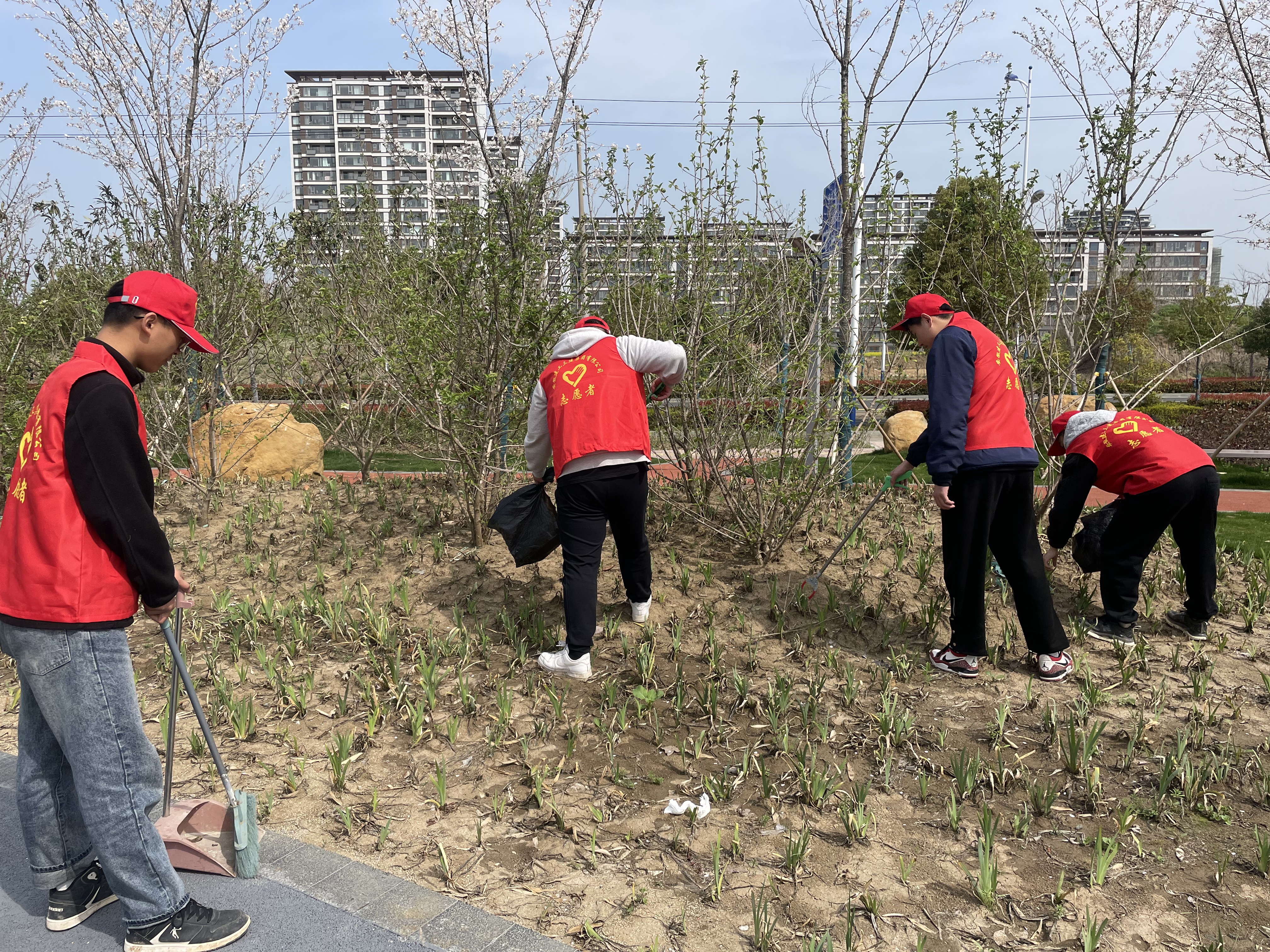 阳春三月,春风送暖。3月30日,在滁州高新区城东片区的蝴蝶里体育公园内,一群身穿红马甲的志愿者们正在协助园区内的清洁工清理公园垃圾,他们是水利交通公司滁州高新区城东片区产业升级示范园一期学苑路项目的职工们。