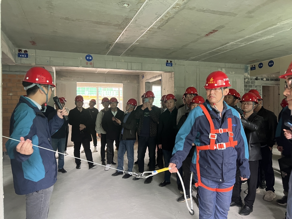 观摩人员一行听取了项目工程概况以及质量、成本、安全等方面管控措施的汇报,重点参观了项目智慧展厅、5#楼样板间、机器人停放区及施工作业层,并就项目相关亮点做法进行深度交流,项目经理姜正宝就安全管控措施及主体结构施工工艺与观摩人员进行详细探讨。