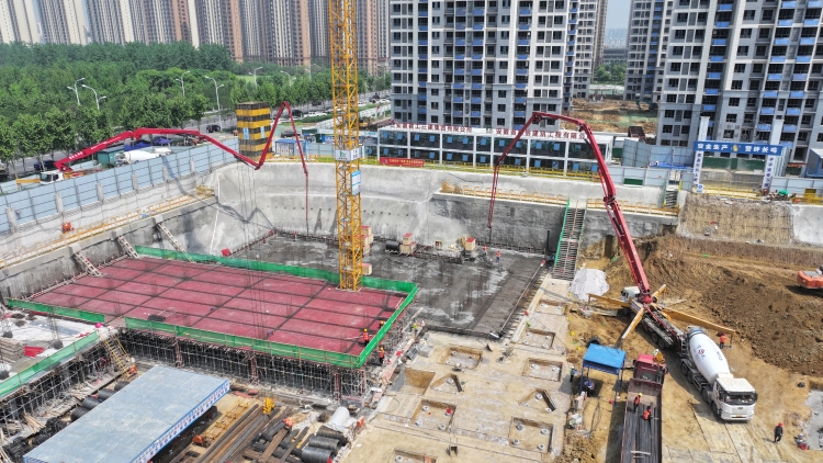 项目200多名建设者开足马力全面推进工程建设,两层地下室以9天一层的速度向前推进。项目团队根据工期节点制定劳动力、机械设备、周转材料等投入计划,不断优化施工方案,合理配置资源,积极主动与多方沟通,保障工序衔接,并对班组人员做好技术质量交底,加大施工安全制度落实、重点部位监控设备、人员值守等方面的检查力度,以“满格”状态拉满施工“进度条”。截至目前,项目地下室封顶已达50%,累计完成产值2641.40万元。