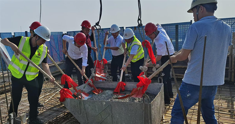 在保证施工安全和混凝土浇筑质量的前提下,项目部充分发挥自身优势,科学统筹,合理调配资源,积极协商对接,制定合理工期计划,严格把控施工工艺,确保项目安全有序地快速推进,顺利的完成了封顶节点目标。