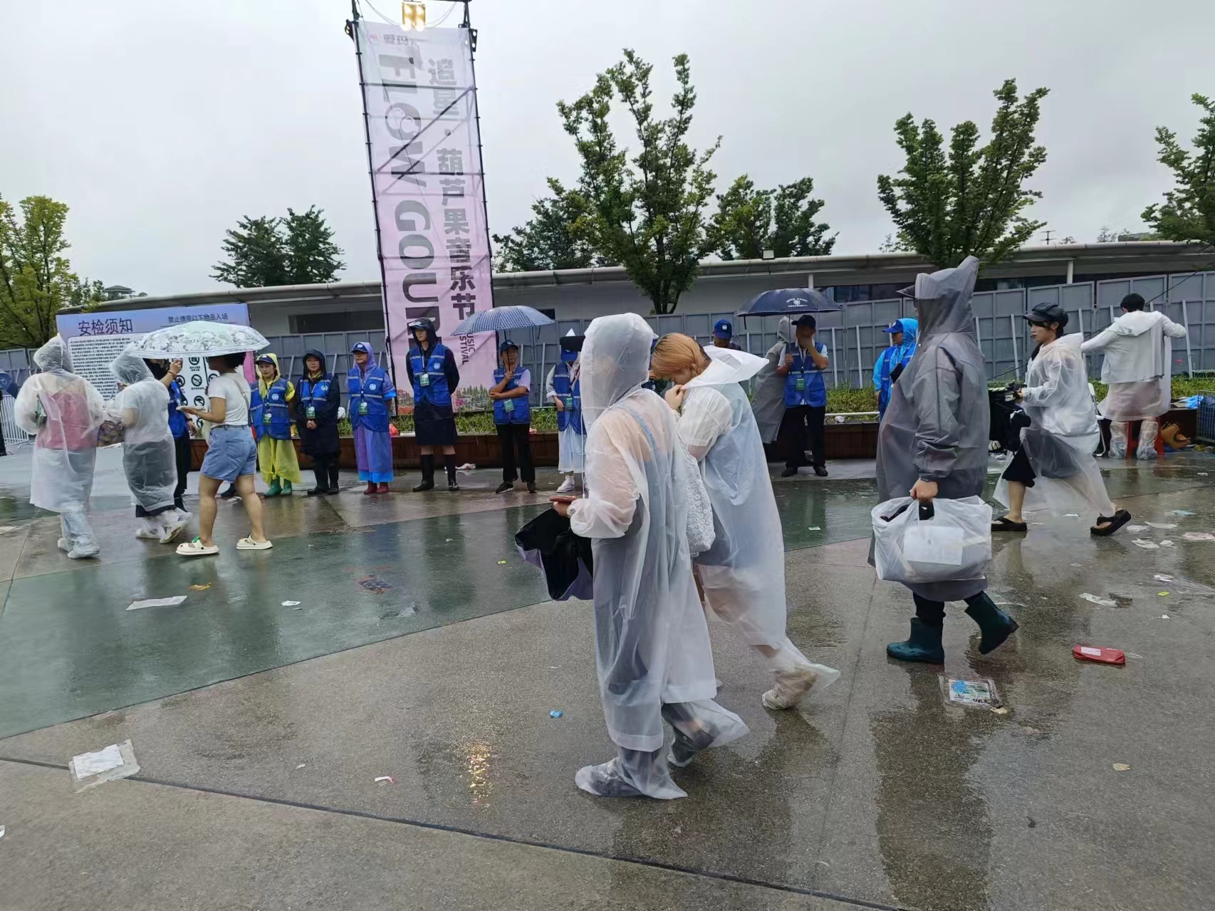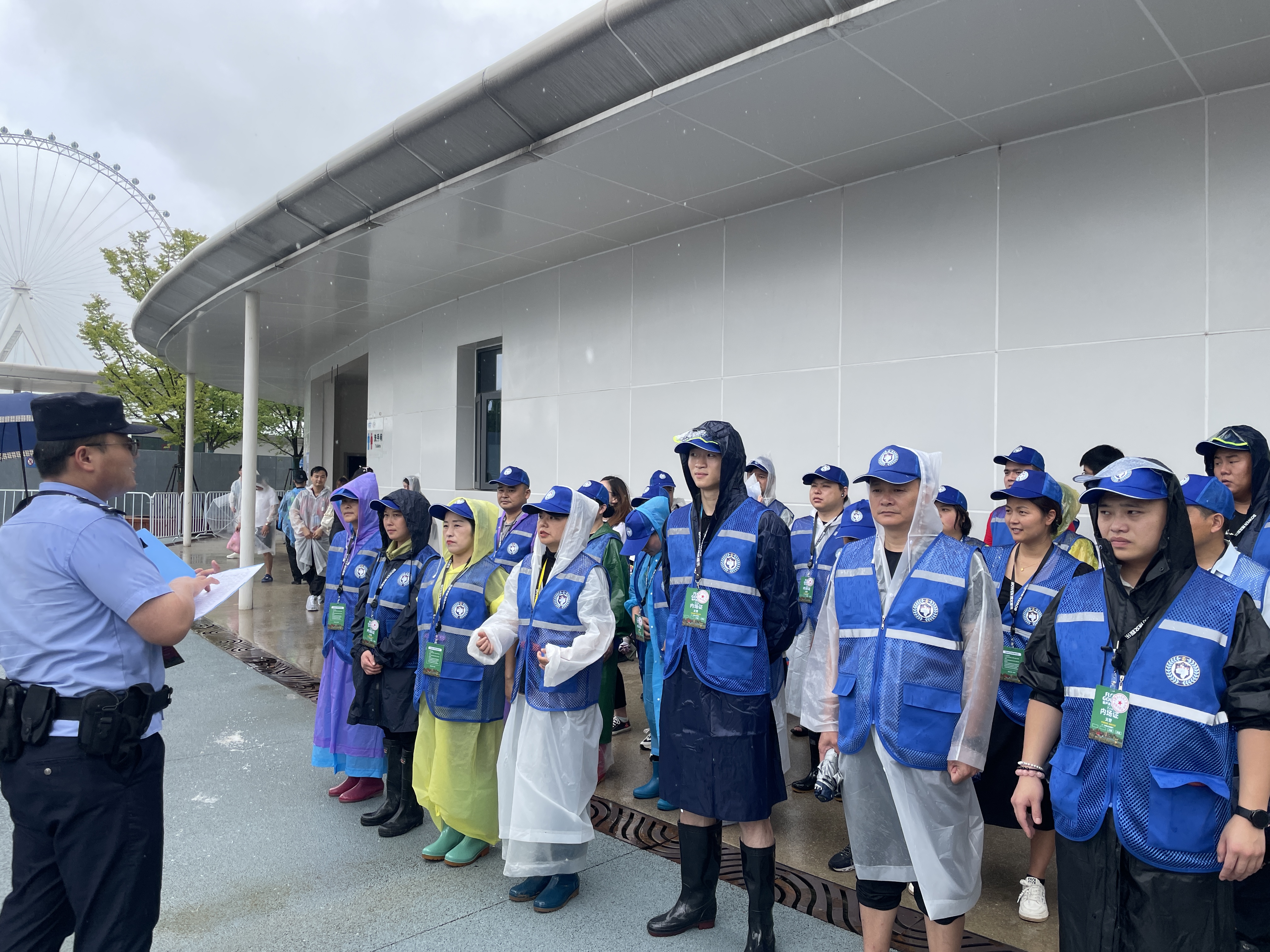 义警服务队员们早早来到现场,他们身穿统一的制服,冒着大雨,毅然决然地投入到维护现场秩序的工作中。在面对恶劣的大暴雨天气,路面湿滑泥泞、视线模糊,但“莲豸”志愿者义警服务队的成员们却毫不退缩。在熙熙攘攘的人群中,他们穿梭在现场检票口,耐心细致地引导乐迷们有序入场,确保每一个人都能安全、顺利地进入音乐节。