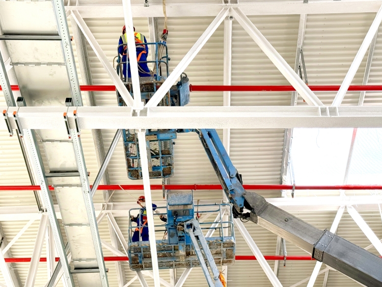 分公司、项目部经过周密规划与统筹安排,优化资源配置、集中优势兵力,攻坚重点任务。目前,现场已经投入了近500名精干安装施工作业人员和上百台工程机械,采取BIM规划排版、多工种协同交叉作业等多项手段,不等不靠、科学调度、主动作为,紧随土建地坪浇筑进度,同步、穿插推进各项施工任务。针对项目施工区域大、作业面广的特点,项目部充分“化整为零”,将庞大的施工园区划分成若干个小工区,实行认领负责,挂图作战、大干快上,确保项目如期完成、按时履约。同时,安装项目部勇于创新,充分利用实时视频会、现场碰头会等高效沟通手段,及时协调解决施工中的难题、分享宝贵经验,高标准高质量高效率推动项目建设。