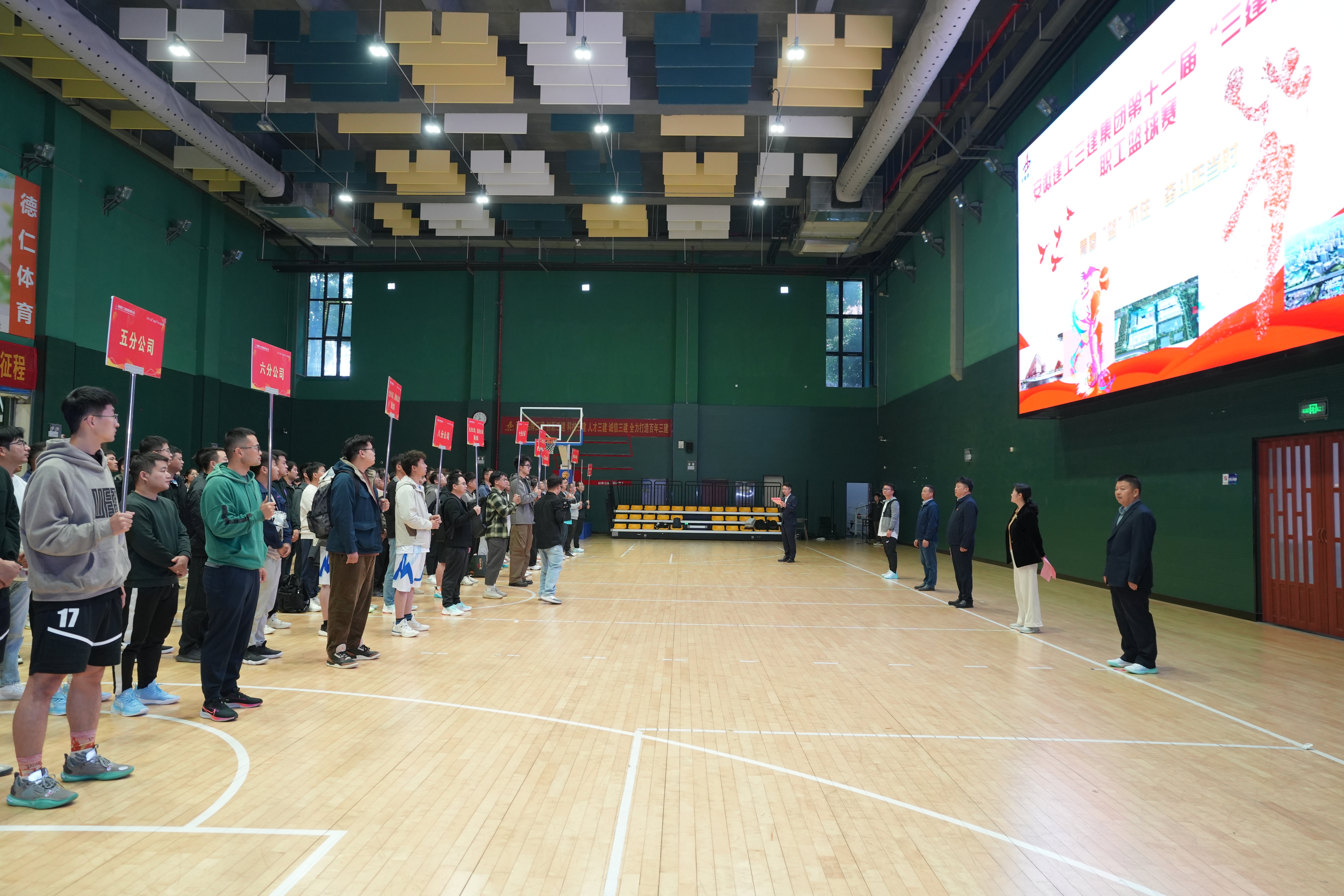 11月13日至15日,安徽建工三建“青春‘篮’不住,奋进正当时”第十二届“三建杯”职工篮球赛在合肥市工人文化宫成功举办。自开赛以来,由各分子公司及公司机关组成的14支代表队、210余名运动员奋勇拼搏、争创佳绩,呈现了一场又一场精彩纷呈的篮球盛宴。建工控股工会副主席、信访办主任邢应梅出席开幕式并宣布开赛,建工股份党委委员、副总经理、建工三建党委书记、董事长何洪春出席活动并致开幕辞。公司领导班子成员、各分子公司领队及职工代表参加开幕式并观看赛事。