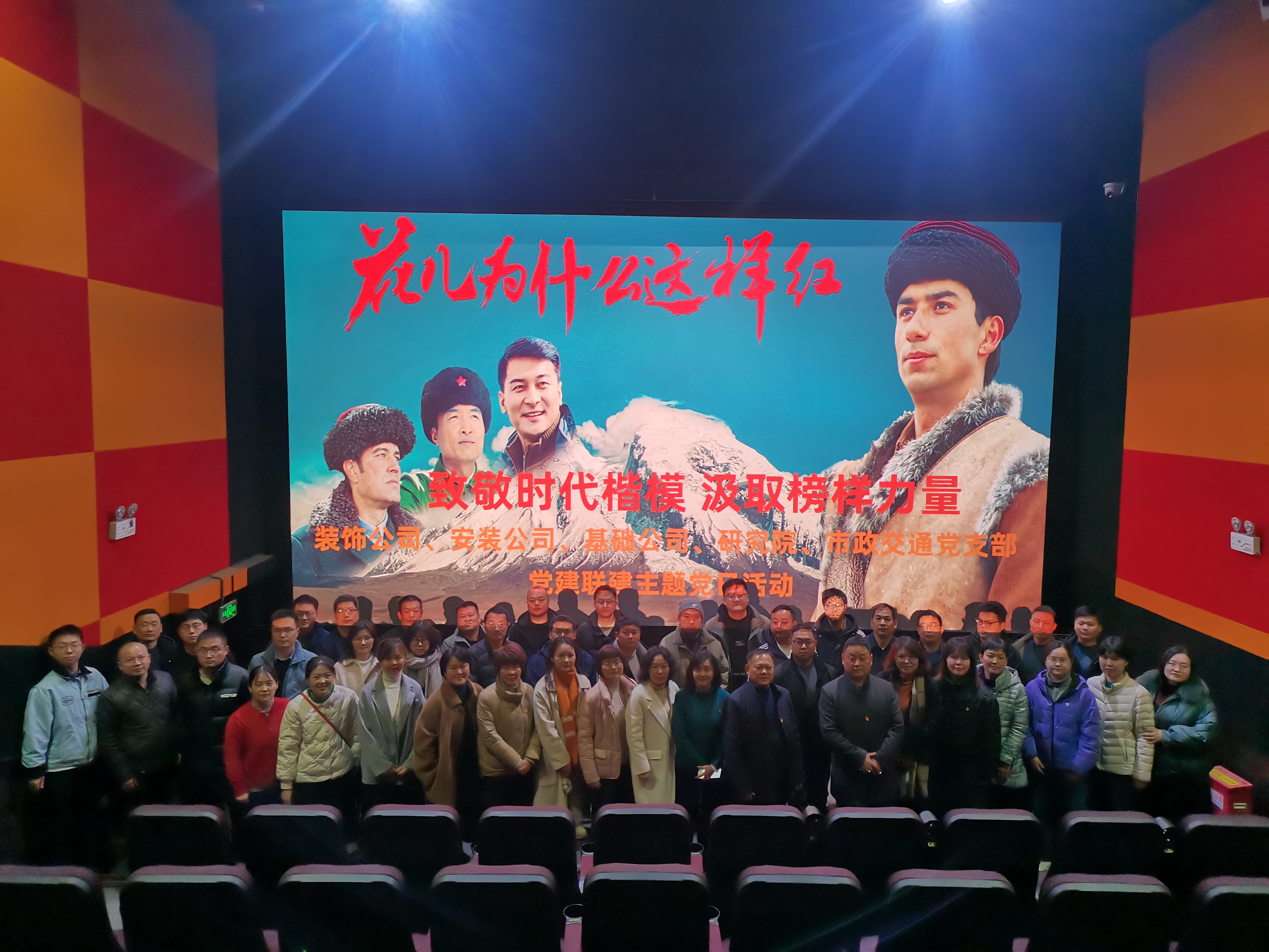 为进一步加强爱国主义教育,12月12日下午,建工三建装饰公司党支部、安装公司党支部、基础公司党支部、研究院党支部及市政交通党支部联合开展党建联建主题党日活动,组织党员、入党积极分子共50余人观看电影《花儿为什么这样红》。