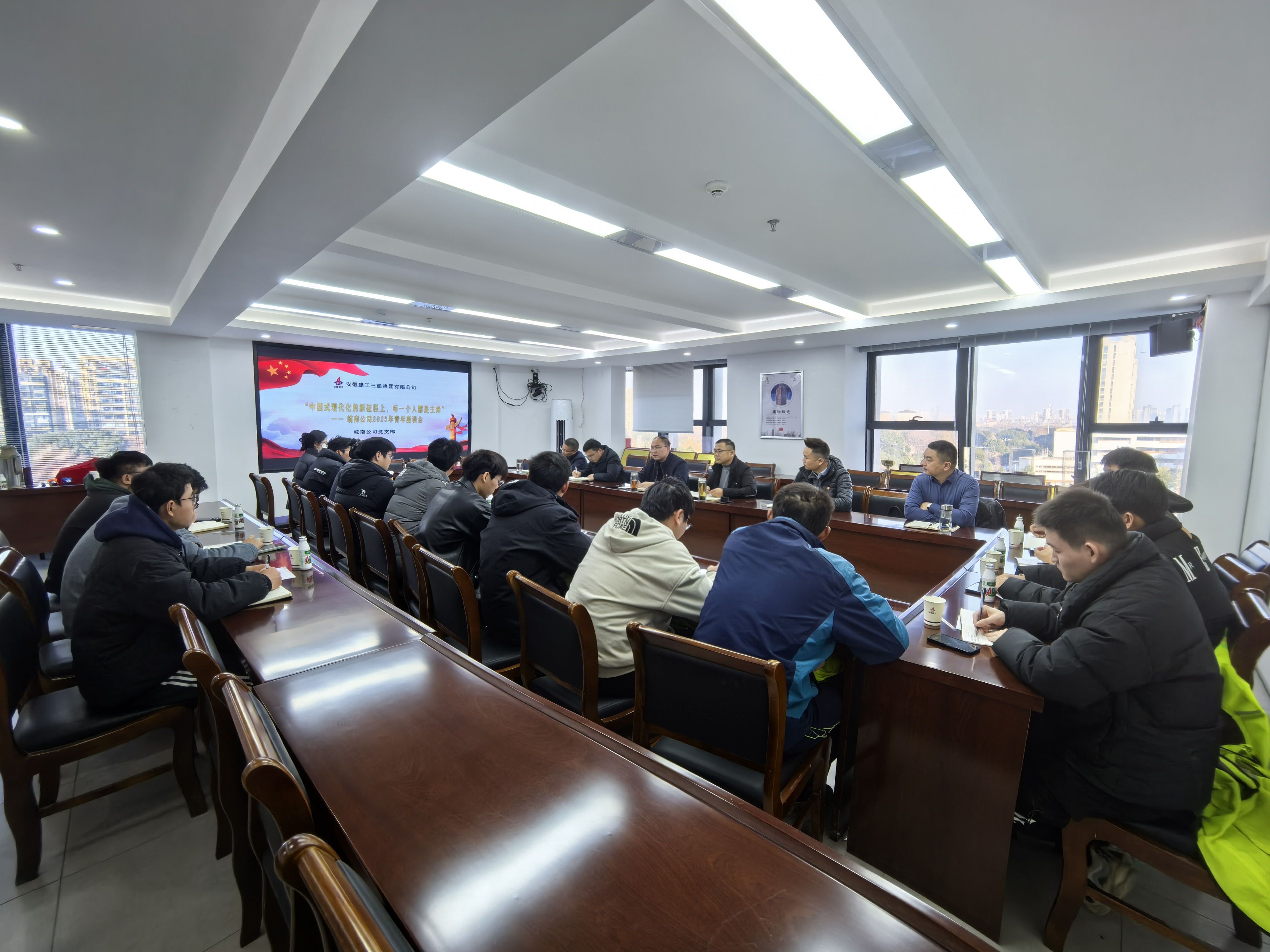 值此新年伊始之际,皖南公司紧紧围绕习近平总书记在新年贺词中提到的“中国式现代化的新征程上,每一个人都是主角”这一主题,组织青年职工骨干于1月1日下午3点在分公司会议室召开2025年度青年座谈会。皖南公司领导班子、项目经理代表及青年职工骨干参加本次会议。