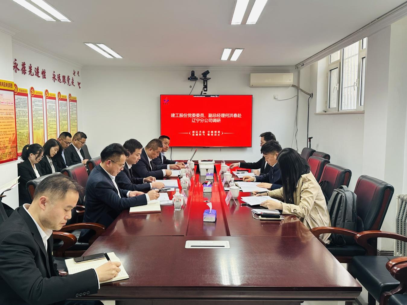 期间,何洪春还赴集团辽宁分公司调研,要求分公司充分整合利用好集团优质资源,进一步解放思想、敢闯敢干,做到“六个保证”,全力以赴拓市场,扎根辽宁、辐射东北,将“诚信共赢、卓越创新、忠诚担当、敬业清正”的集团核心价值观践行到日常工作中,不断提升品牌美誉度与影响力,让建工品牌在市场中熠熠生辉,成为行业标杆与典范。