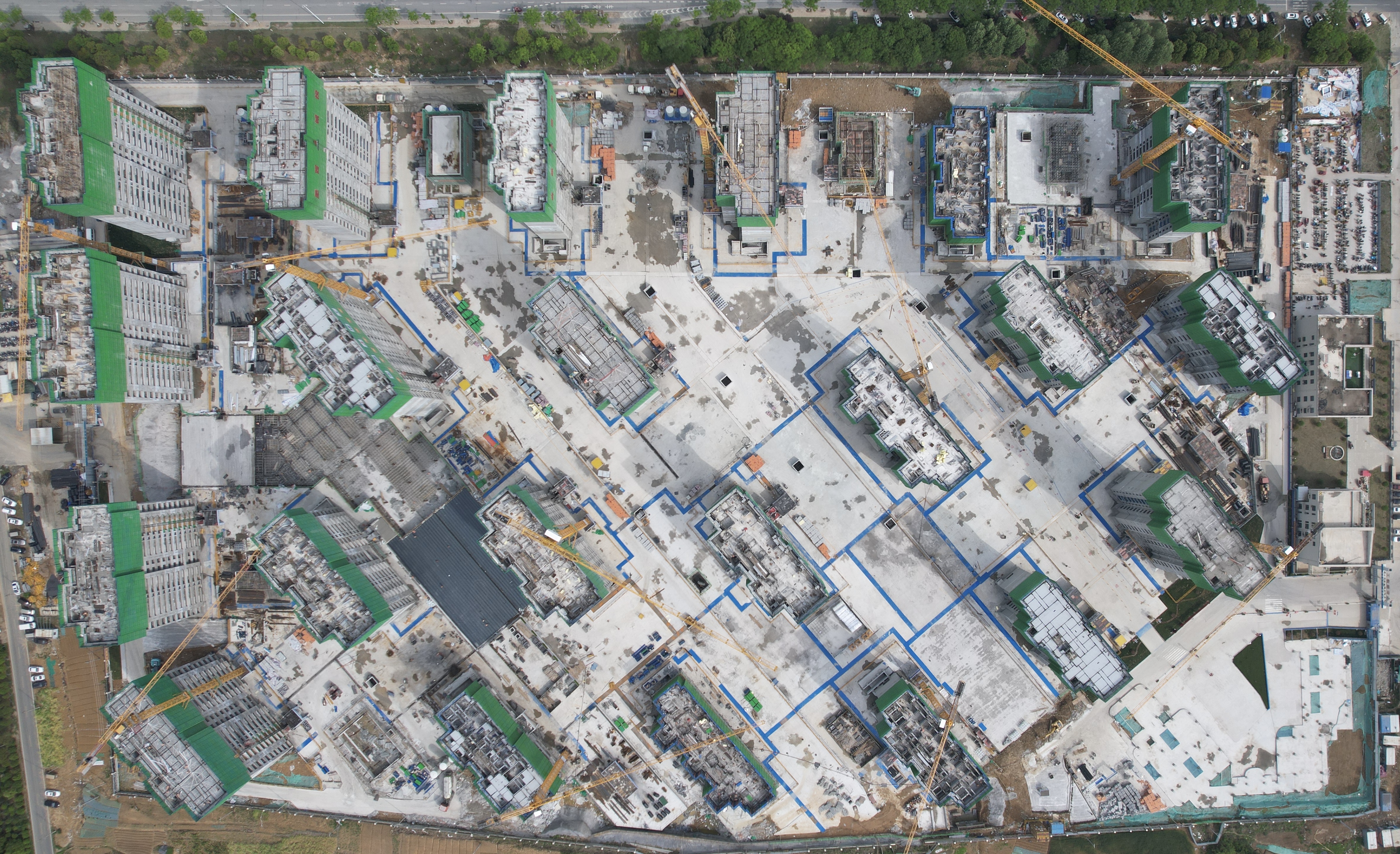 董岗星辰苑项目位于肥西县花岗镇,总建筑面积约56.65万平方米,主要建设内容为新建高层住宅楼40栋,配套建设社区服务用房3栋、18班幼儿园1栋、配电房及其他附属设施,计划安置户数3798户,总人数达12154人,预计于2026年2月建成投入使用。项目建成后将有效改善当地群众居住条件,提升生活品质,对完善城市功能、促进区域发展具有重要意义。目前,项目20栋单体施工至15层以上,30栋单体墙体全面展开,最高砌筑至10层,38栋单体外立面粉刷、保温、门窗副框、栏杆、真石漆腻子等随爬架提升同步施工。