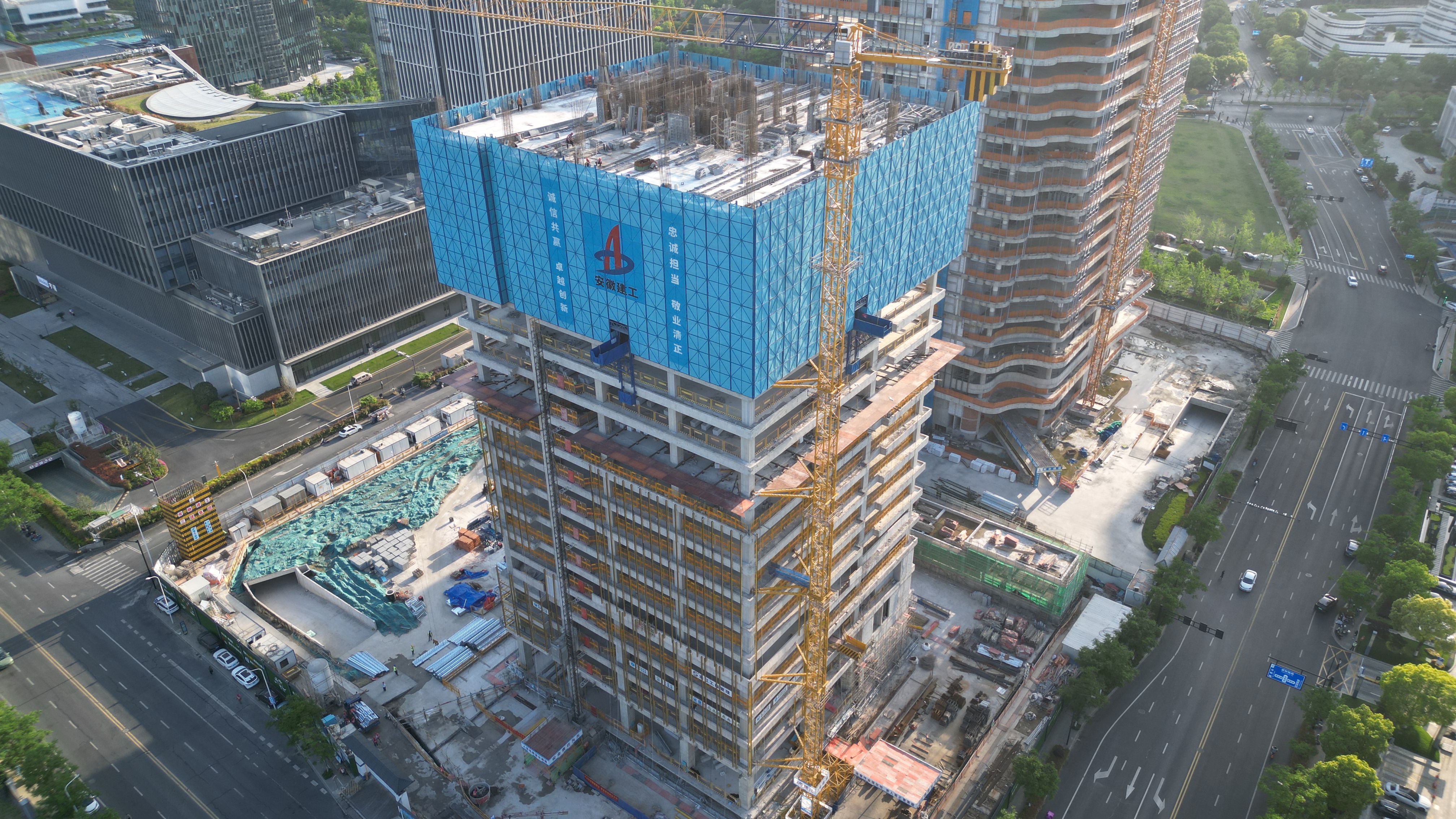 远程新能源商用车产业基地项目位于杭州市滨江区西兴街道,东至协同路、北至联慧街,总建筑面积约5.56万平方米,主要拟建物为1幢21F的1#主楼(生产用房)及配套用房(开闭所、变电所)。项目建成后将聚焦新能源商用车的核心技术和关键零部件,打造行业领先的新能源商用车产业基地,引领商用车行业的新能源化和智能化发展。截至目前,项目已完成地下室顶棚、墙面抹灰施工以及50%的墙面涂料施工,完成主楼15层以下二次结构施工以及20层墙柱、顶梁板施工。