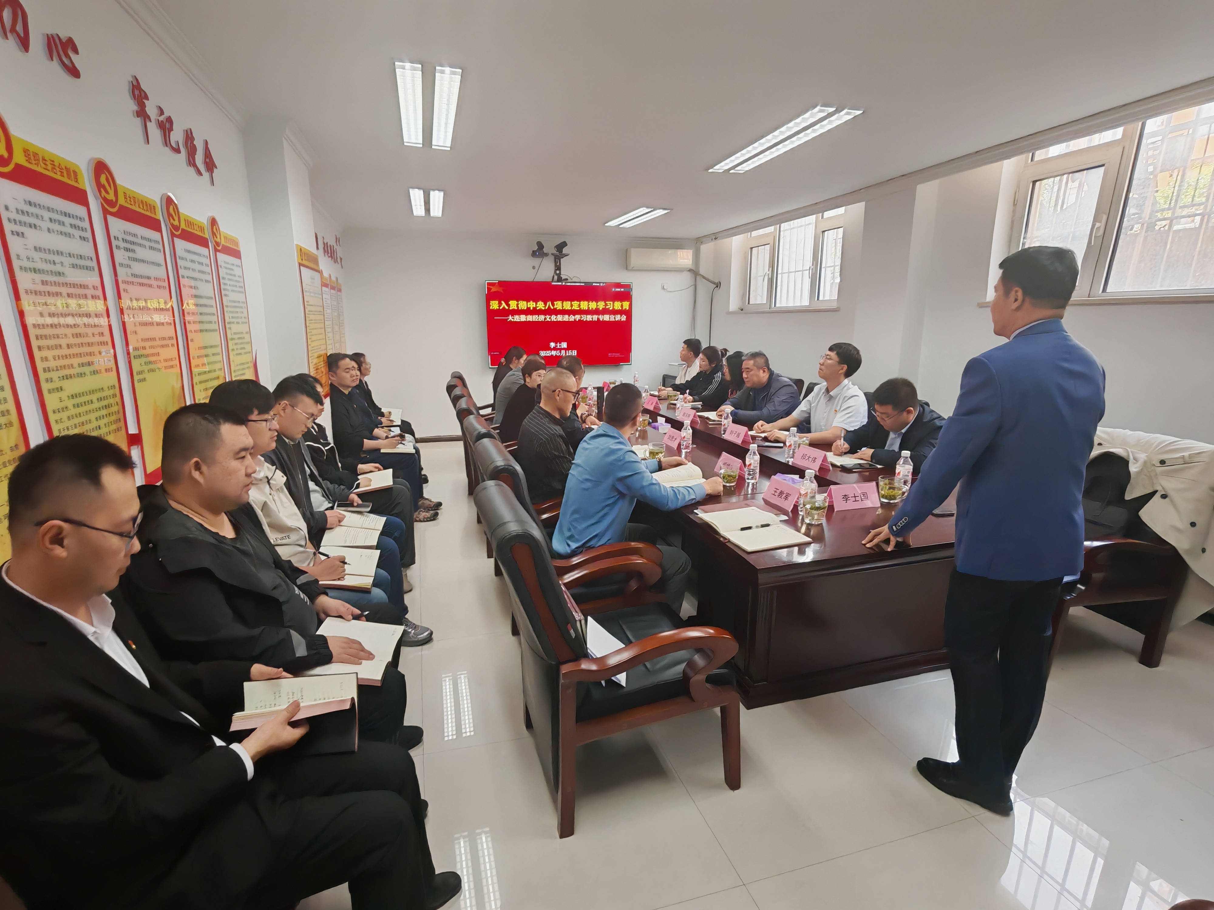 为进一步加强作风建设,5月15日下午,安徽建工集团辽宁分公司创新学习形式,联合大连市徽商文化促进协会、大连瀚闻资讯有限公司两家党支部开展了一次深入贯彻中央八项规定精神学习教育专题党课,共30余名党员干部参加,部分党员干部通过视频连线方式参加党课学习。