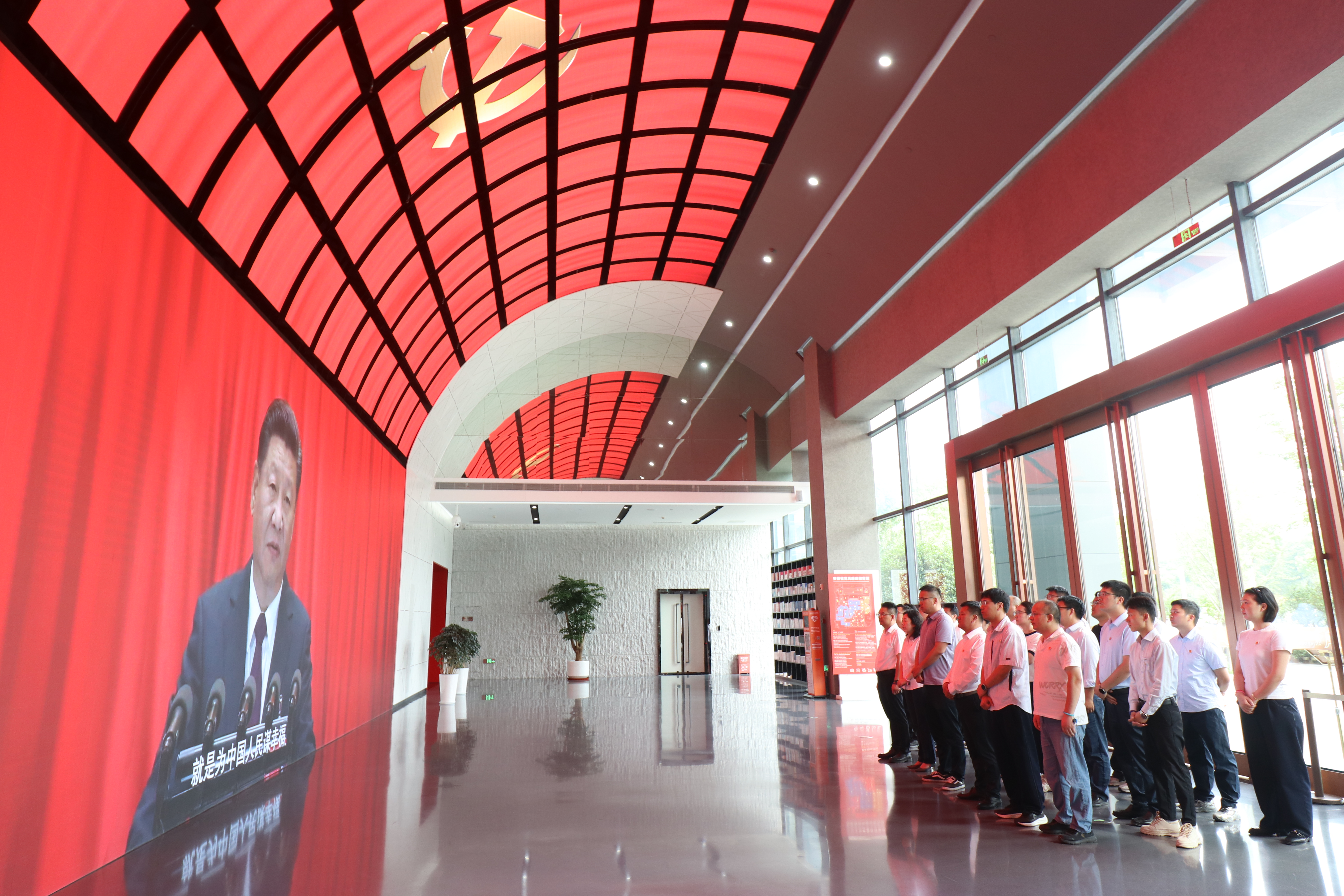 在专业讲解员的引导下,全体党员有序步入教育馆集中观看了《永远在路上》主题开场片,随后依次参观了“纪律立党 从严治党”“廉润江淮 清风扬帆”“以案为鉴 警钟长鸣”“不忘初心 永葆清廉”等系列展厅。展厅内,一个个触目惊心的案例、一幅幅发人深省的画面、一句句痛彻心扉的忏悔,为全体党员敲响警钟,提醒全体党员要以案为鉴,深刻反思、引以为戒,时刻坚定理想信念,自觉加强党性修养,始终做到忠诚坚定、遵纪守法、清正廉洁。最后,全体党员来到宣誓厅。面对鲜红的党旗,党员们整齐列队,高举右拳,庄严地重温入党誓词。