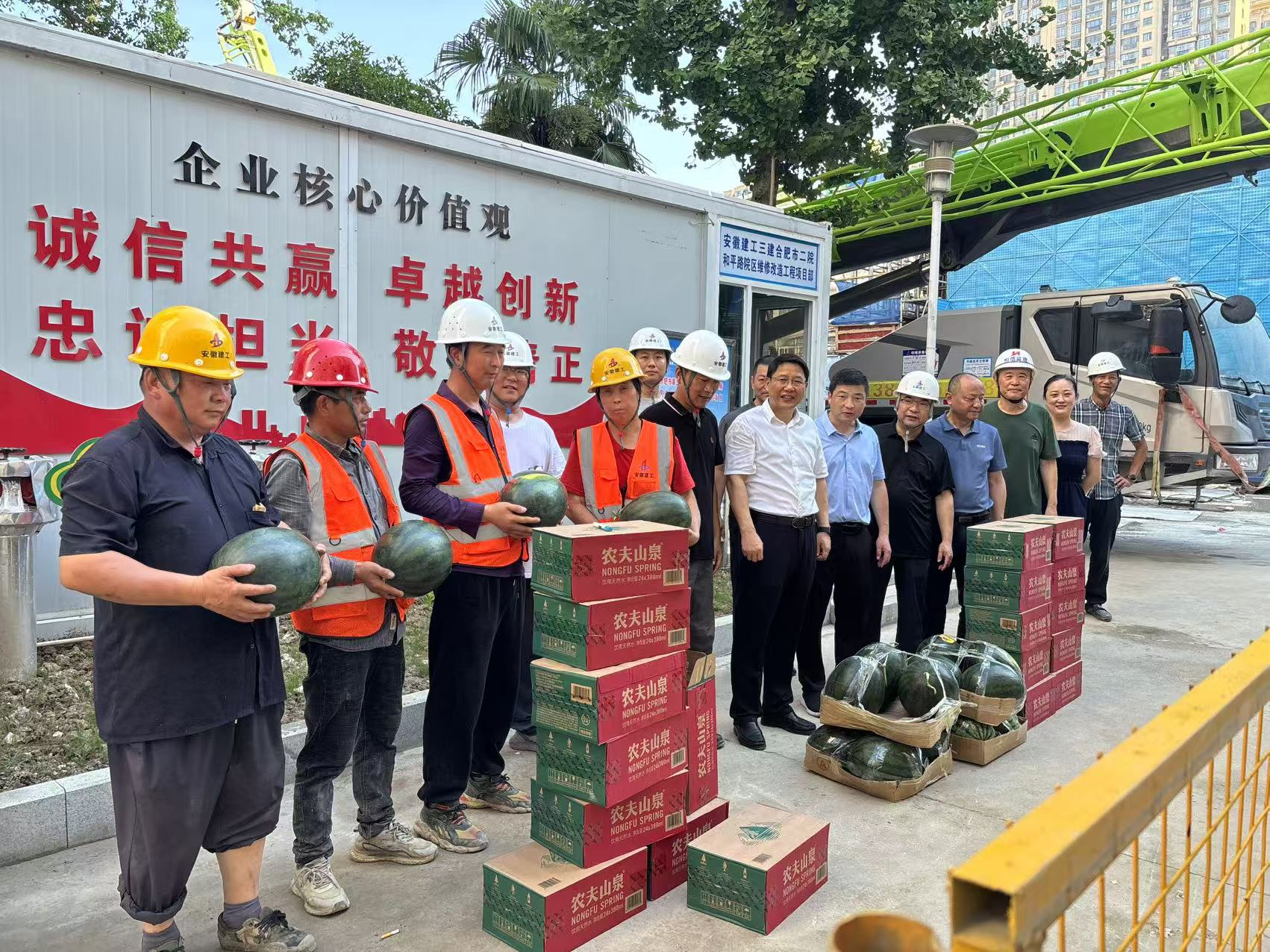 入夏以来,气温持续攀升,为切实做好防暑降温工作,保障工人身体健康,7月4日,合肥市第二人民医院院长储建军率院领导班子成员赴合肥市二院和平路院区维修改造项目开展“送清凉”慰问活动。