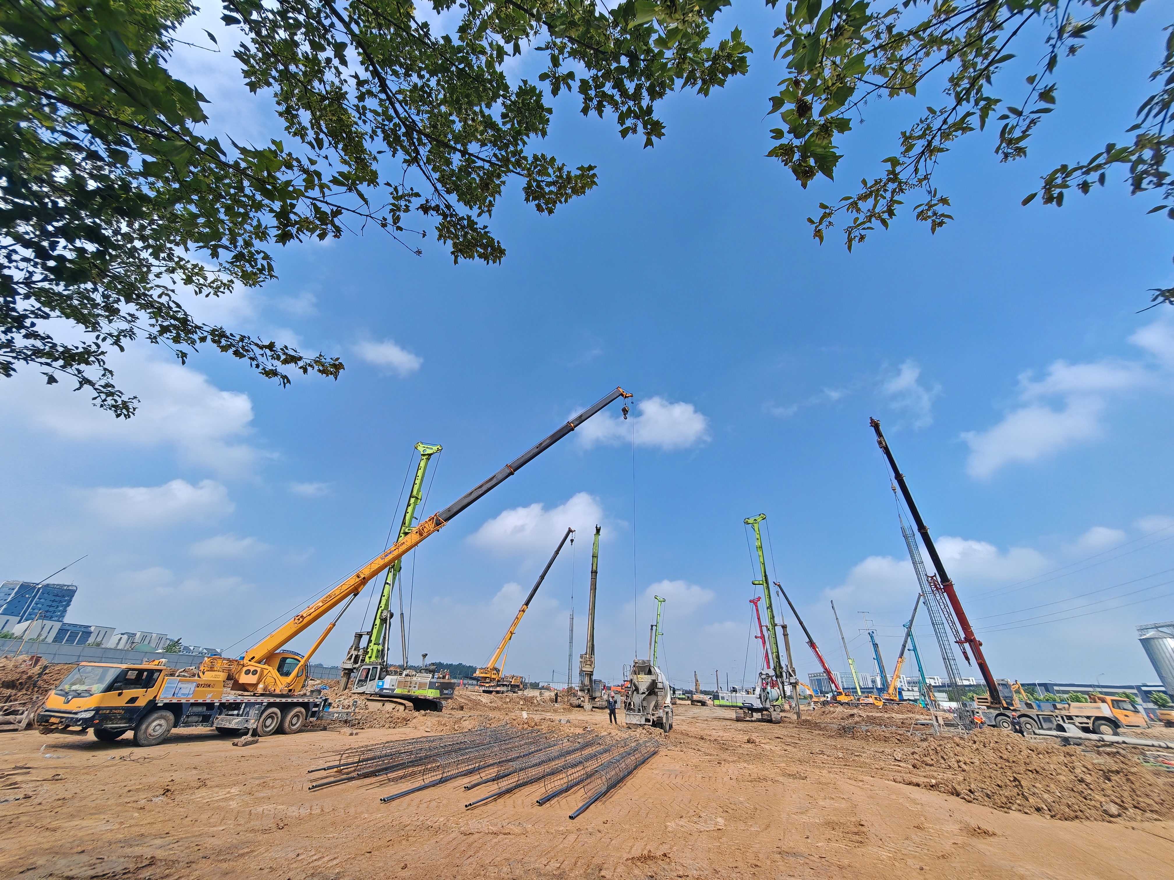 自启动以来,面临工期紧、任务重、标准高多重考验,项目团队发扬 “特别能吃苦、特别能战斗”的企业作风,在攻坚中展现硬核执行力。面对1246根工程桩的施工任务,桩基分包招标刚完成,项目便在48小时内统筹协调8台打桩机同步进场,以高效执行赢得建设单位的充分认可。打桩机进场后,现场管理人员实行科学高效的轮转作业模式,昼夜奋战,克服梅雨季节潮湿、高温天气等不利影响,仅用35天就完成1246根(总米数29664米)的水下混凝土灌注桩浇筑,实现产值约1750万元。