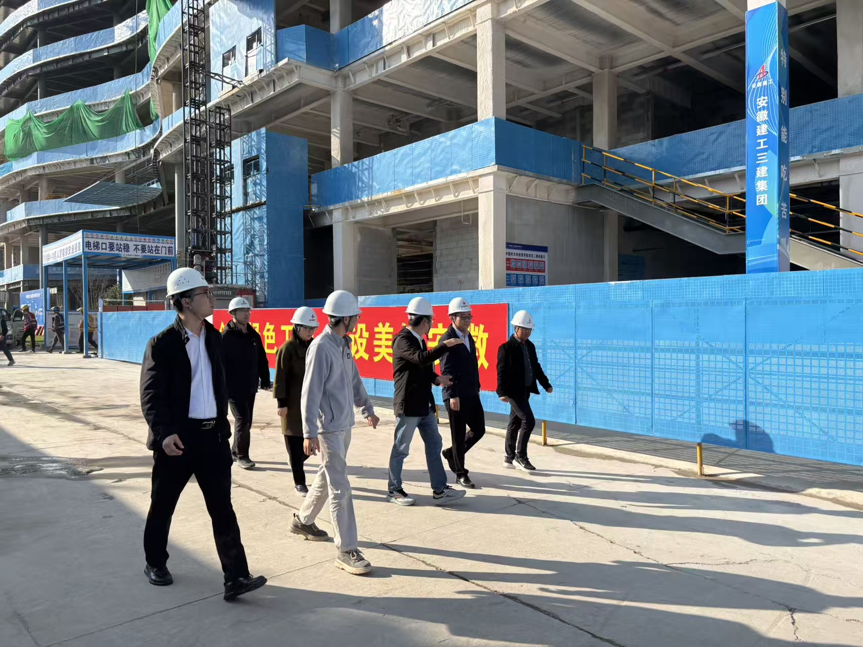 10月22日,合肥市滨湖新区建设投资有限公司与建工三建第一建筑公司在中科大商学院项目现场联合开展"清廉项目"联创共建活动。合肥滨湖科学城纪检监察工委四级调研员陈升,合肥市滨投公司纪检监察室主任聂聆,第一建筑公司副总经理童朝堂等参加活动。