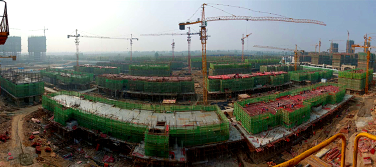 图为“十一”期间项目全体职工奋力抢工期