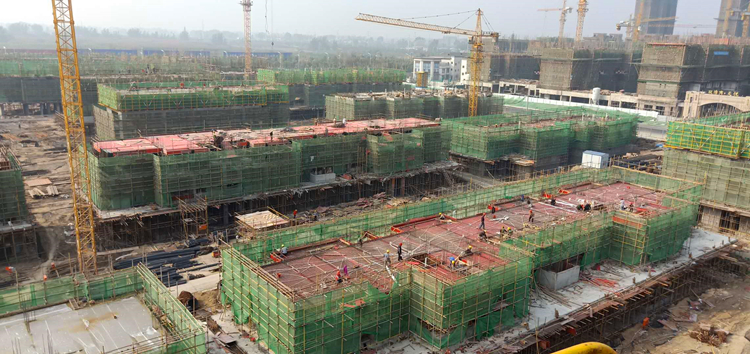 位于阜阳市城南新区的阜阳置地双清湾小区项目占地面积近49万平方米,其二期项目天镜组团总建筑面积约20.3万平方,地下建筑面积5.8万平方米。今年7月底四公司进场开工。为了销售的需要,业主方提出要在10月15日即两个半月的时间里,全部28栋建筑都要达到完成一层结构的预售节点要求。而这两个半月时间里,正赶上夏季高温天气、秋收农忙、开学季、中秋国庆双节等多个不利因素,严重影响工程进度。