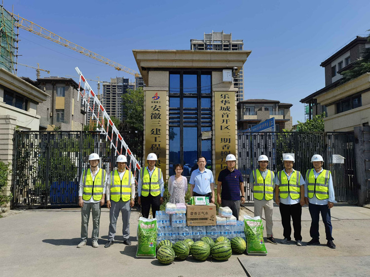 近日来,全国气温不断攀升、烈日炎炎,项目一线职工以及农民工兄弟们为赶工期、赶进度仍然坚守岗位,为进一步凝聚团队士气,助力现场施工生产,6月30日,西北公司工会组织开展为项目一线“送清凉”活动。西北公司领导班子深入项目一线,为近百名在施工一线的农民工兄弟发放矿泉水、藿香正气水、毛巾、绿豆、西瓜等防暑降温物品,向坚守奋战在一线的施工人员表示亲切的慰问。