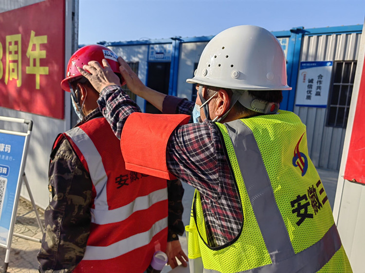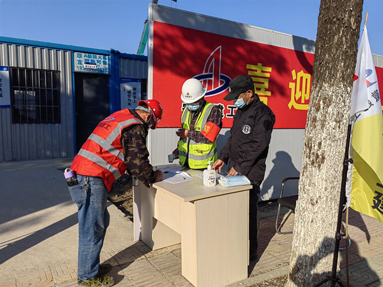 前期围墙未完全封闭,给防疫带来一定的难度,为防止工人未登记入场私自出入,项目经理崔冲双管齐下,带领项目部制定防疫方案。一是采取项目管理人员现场巡查制度,实行网格化管理。二是制定安全帽每日进场贴牌,对入口登记过的工人安全帽上贴上安全牌,便于巡查人员识别当日现场人员是否按要求进场,此方式得到了业主和监理单位充分认可。