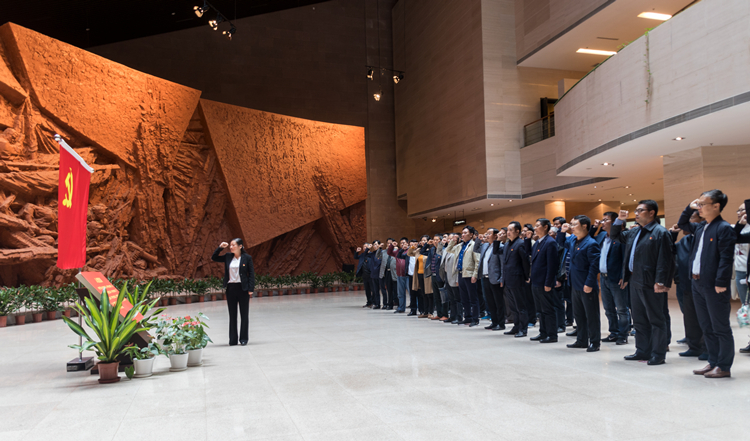 与会党员在渡江战役纪念馆重温入党誓词