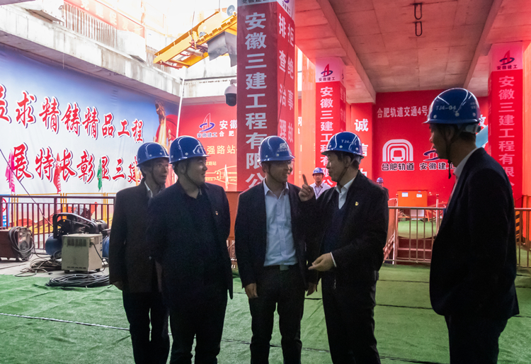 吴越一行参观三建合肥地铁4号线4标段项目部并同公司党委书记左登宏交流项目党建工作