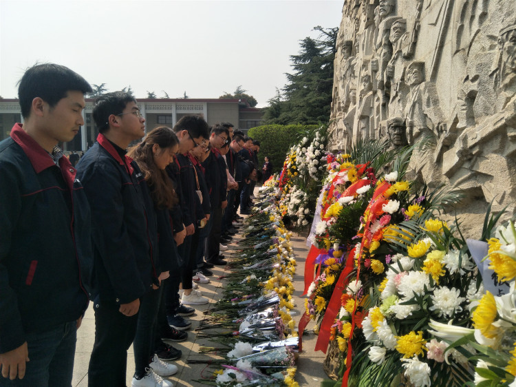 全体人员向烈士纪念碑鞠躬默哀,向革命先烈献花