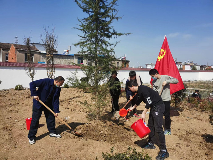 在植树现场,党员们认真地挖土、扶苗、填土、浇水,干劲十足,高质量完成了植树任务。大家种下的不仅仅是一棵树苗,而是一份希望,是对绿色家园、优质生态环境的向往。通过一上午的努力,400余株的雪松、红木李、红头枝蓝、高杆月季和紫薇等树苗给荒地换了“绿衣”。