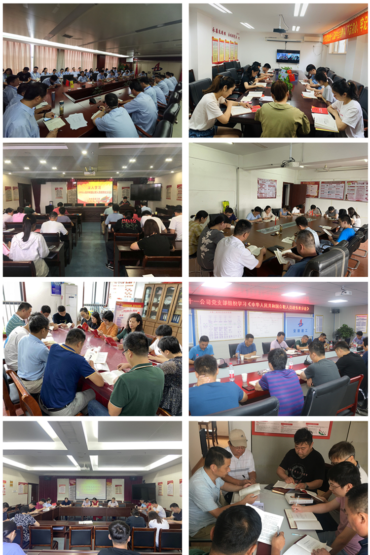 7月30日至8月10日,公司所属一至十二公司、建筑工业公司、华力劳务公司、市政公司、擎工建材公司、安装公司、基础公司、蚌埠公司、芜湖公司、大连公司、厦门公司、江西公司等所属各单位纷纷组织管理人员开展《公职人员政务处分法》学习。除了组织各自管理人员集中学习之外,各单位还根据机关工作、项目管理等实际情况,以视频学习、联合学习、深入项目一线学习宣贯、职工自学等多种方式开展学习宣贯工作。其中,四公司在学原文的同时结合“三个专项整治”工作展开学习过论,强化学习成果;一至三、五至十公司组织职工联合学习,进一步节约学习成本;大连公司组织机关职工、项目职工视频学习,实现学习宣贯全覆盖;十一公司深入金寨超高层项目开展学习宣贯,将学习宣贯工作延伸到项目一线。各单位还要求职工开展自学,进一步扩大学习范围。
