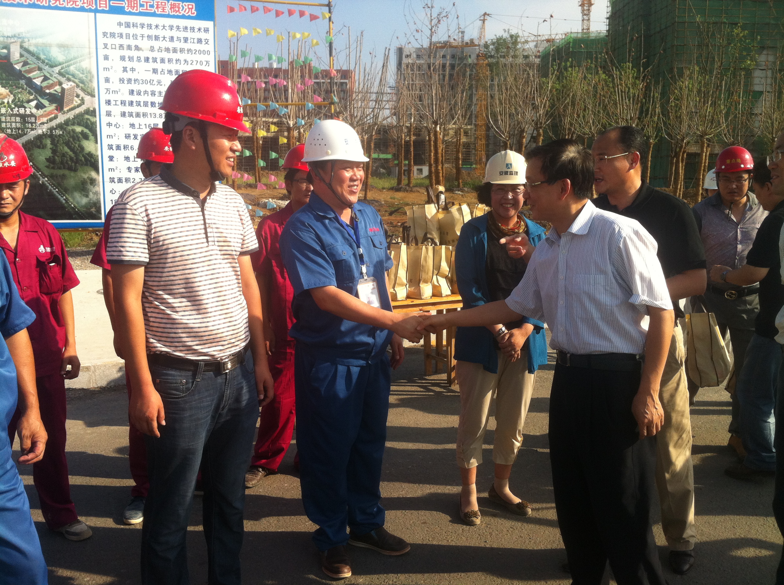 8月2日下午,中科院院士、中科大校长侯建国一行,来到我中科大先进技术研究院综合主楼项目施工现场,亲切慰问正在紧张施工中的职工,并送来防暑用品。候建国还实地察看了施工现场,对现场管理人员和工人冒着酷暑顽强战斗的表现给予了表扬,对大家千方百计克服困难,在如此短的时间内保质保量的完成施工任务表示由衷的感谢。