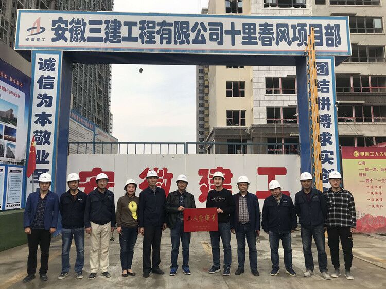 2019年11月6日下午,安徽三建公司工会主席、纪委书记李家保一行前往九公司肥东碧桂园十里春风项目,对该项目申报的安徽三建“工人先锋号”进行验评,并予以授牌。