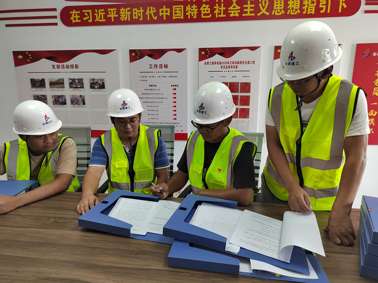去年8月习近平总书记考察安徽第一站来到王家坝时,要求各级党委和政府引导和鼓励村民逐步搬离蓄洪区,确保蓄洪区人口不再增多。安徽三建阜南王家坝项目作为淮河行蓄洪居民迁建安置工程的标志性项目,建好该项目意义重大。项目党支部扎实开展党史学习教育活动,项目党员充分发挥“舍小家,保大家”的王家坝精神,时刻冲在第一位,发挥先锋模范作用,时刻谨记党员职责和工作分工。在关键环节、关键领域、关键岗位设置党员监督岗,确保了项目成本、安全、质量、廉洁管理无风险,保证了抢工的质量。在项目抢工过程中,党员同志主动坚持跟班作业,坚守在现场攻坚克难第一线,带头加班“挑灯夜战”,耕耘在突破“卡脖子”难题最前沿,坚持将党史学习过程中汲取的精神养分,转化为推动重点民生项目建设的强大行动力。