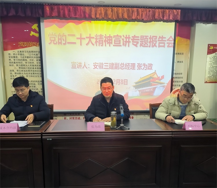 2月8日,公司副总经理张为政赴香枫创意园为七公司、九公司、架业公司等联系点单位开展党的二十大精神专题宣讲,公司招标中心主任张俊、成本合约部主任陈鹏参加。